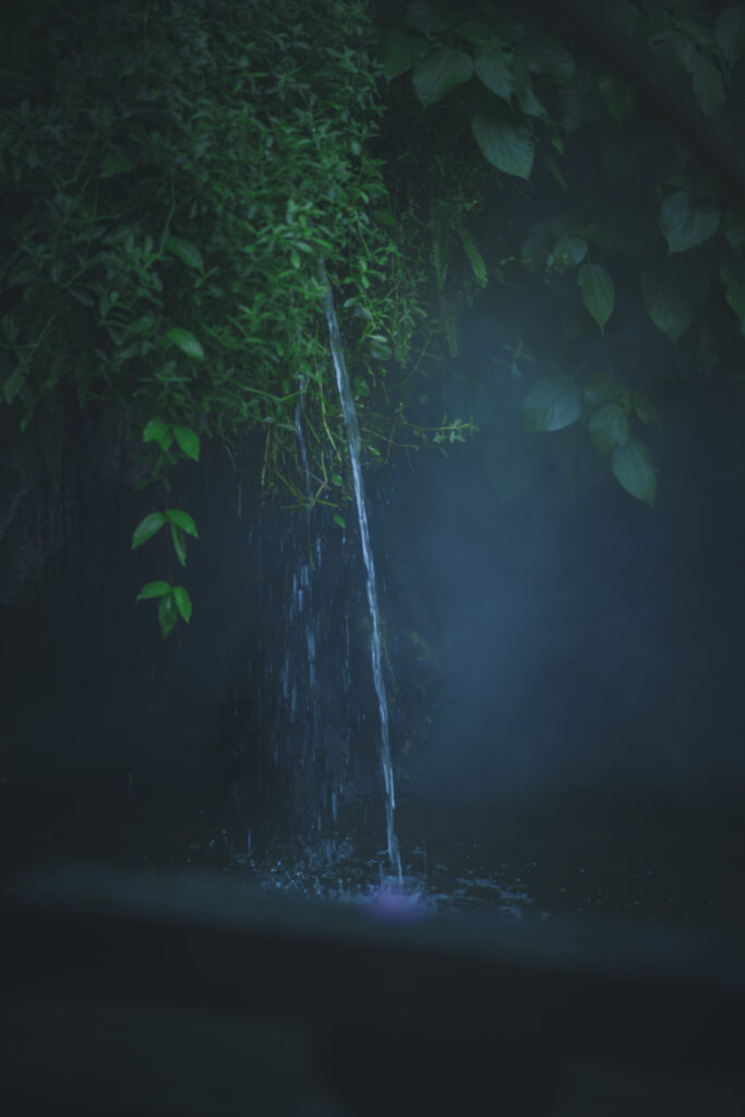 青瓦飞檐在水汽里晕开轮廓,假山叠石间的流水声,混着草木的湿气漫过来。